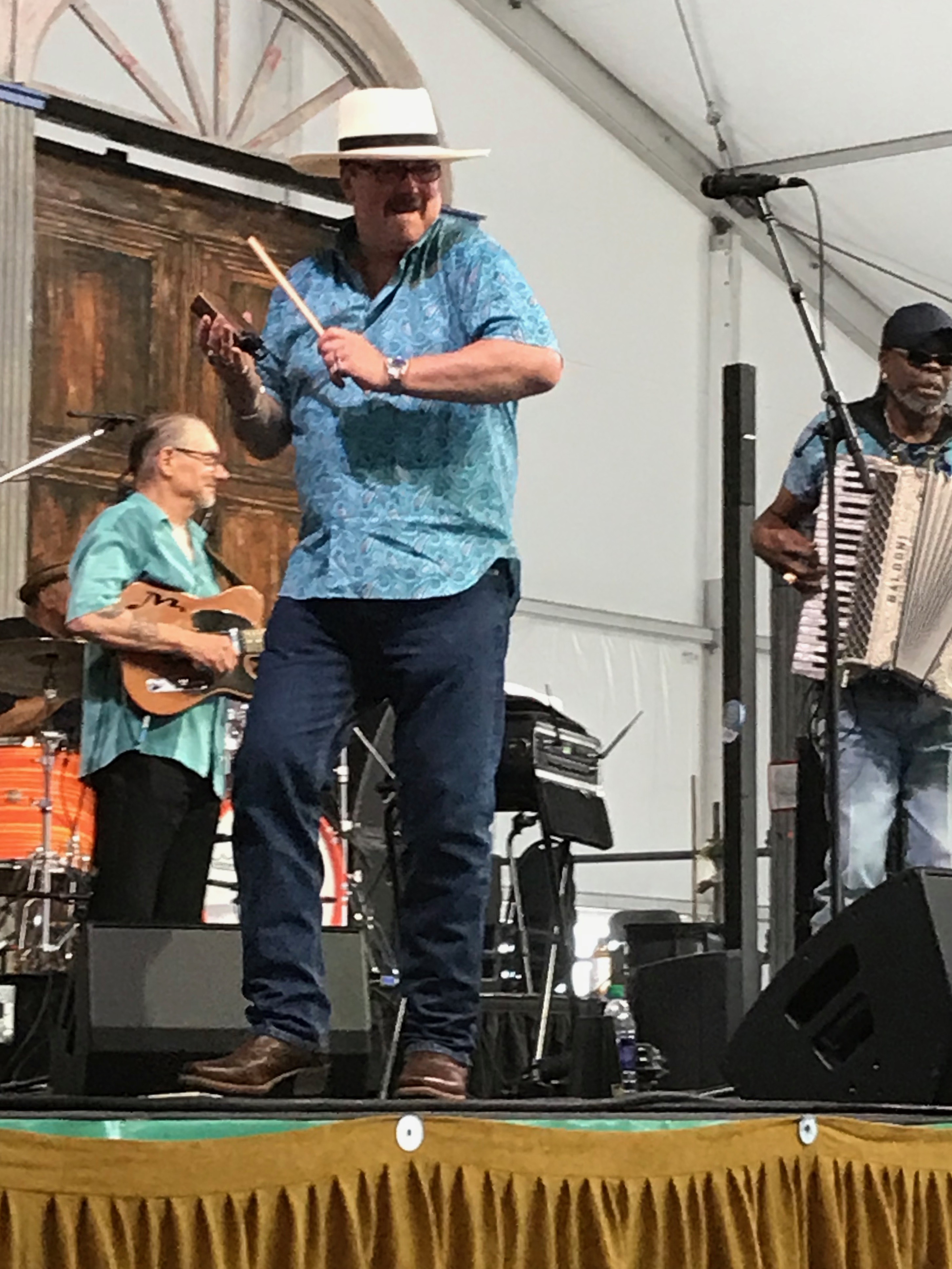 The meat of the matter is the music. And boy was it something. The big names were professional, and put on a show, but the local and the regional performers, they tore it up. Mark Sheryl Crow off the “to see” list, as well as Aerosmith. I won’t be searching out their next venue. They were great, don’t get me wrong. But let me tell you, if CJ Chenier is anywhere in the Southeast, playing his Zydeco, I’m going to be on the road to find him. Not just him, but his washboard player and his cowbell player (yes, that is a real instrument and that man is my quirky Jazz Fest Crush.)